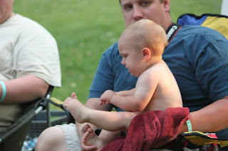 We had a lot of fun. The guys went swimming/fishing and the girls had a baby shower. (sorry I don't have pictures of that. Karen got some cute things!) We had a little talent show, and just hung out.