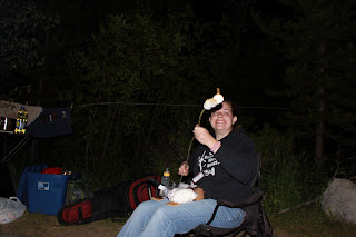 We went camping with Perry and Alice and Rachel up around Sun Valley. The mosquitoes were nuts! Even with everyone wearing bug lotion and bug spray, no one escaped getting bitten. Mack only got one bite thankfully. We also stopped at Nathan's friend Ray's reception in Hailey, but didn't get any pictures. We ate really well on this trip. Especially on Rachel's birthday. She picked country fried pork chops, mashed potatoes and corn. YUM! The blueberry cinnamon rolls were enough of a fiasco to deserve their own post. I'll link it in later. It sure was fun going camping with Nathan's family. It's made us even more anxious for the family reunion at the end of the month.